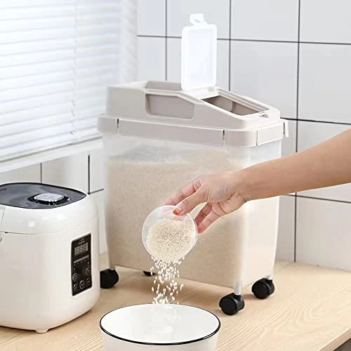 - MULTIPURPOSE: Dog food storage container can be used for flour, nuts, beans, snacks, grains, pet food, etc., and can be placed in kitchens, pantries, countertops, cabinets, etc.