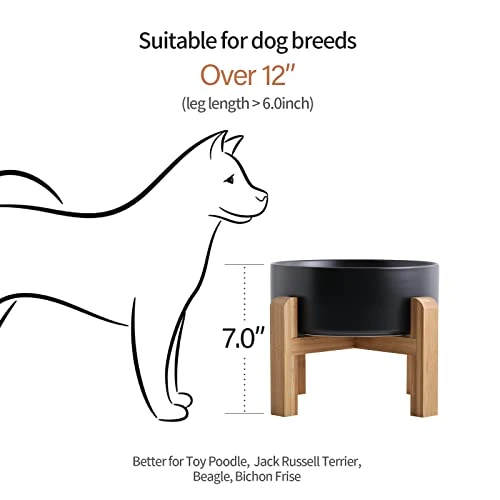 - MODERN CUTE with Wood STAND : – Cute dogs bowl with WOOD STAND, More durable than fragile porcelain and heavier than flimsy plastic dishes, stoneware strikes a perfect balance between a durable, heavy material and an elegant appearance. The weight and the high walls of the bowl make it tip, skid, and spill resistant, which means less cleanup for you. These ceramic dog dishes are ideal for either water or food.