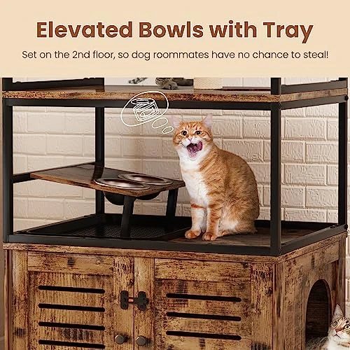 - 【Practical Cat Cabinet】Put a cat litter box in the cabinet below, there will be a private washroom for your kitties, less smell in your home,The divider design gives your cat the space to hide and poop at ease.