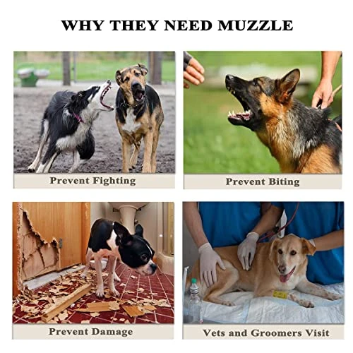 - Choose Right Size: Please measure your dog’s circumferences of the snout and neck before purchase, and you can refer to our size guide from the picture and description. We also provide the instruction on training the dog to accept the muzzle and how to adjust it for snug fit. Our small medium large dog muzzle for small medium large sized dog such as Bull Terrier, German Shepherd, Australian Shepherd, Golden Retriever, Husky, Border Collie, Dobermann.