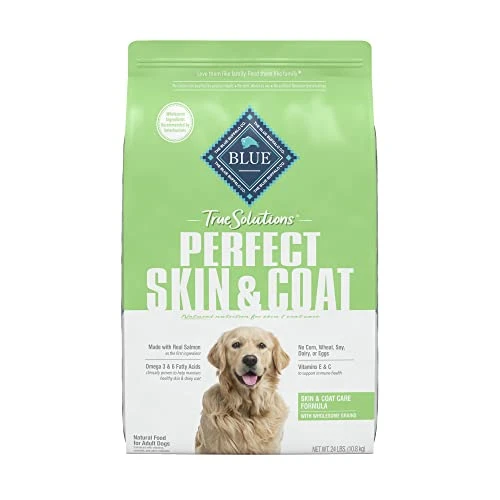 - PACKAGING MAY VARY: Contains one (1) 24 lb. bag of BLUE True Solutions Perfect Skin & Coat Adult Dog Food, Salmon