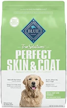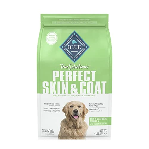 - PACKAGING MAY VARY: Contains one (1) 4 lb. bag of BLUE True Solutions Perfect Skin & Coat Adult Dog Food, Salmon