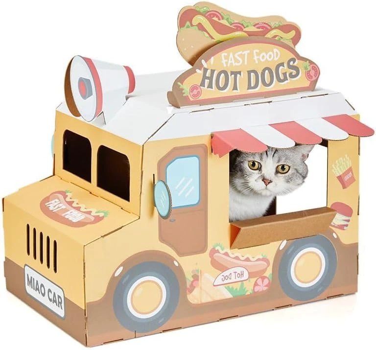- Durable Material: Crafted from high-density, corrugated cardboard, this cat house withstands clawing and biting. It is sturdy, durable, and does not produce dust, protecting your cat’s respiratory health.