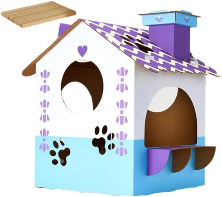 - Engaging Playground: Catering to your cat’s natural curiosity, our house creates a stimulating space for exploration and play. The included scratching board serves dual purposes for claw maintenance and fun.