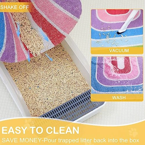 - Easy to Clean: Just pick up the kitty litter mat and shake it, the litter will fall off, which can reduce wasted litter. You can also use a vacuum cleaner, and if you want a deep cleaning, you can also wash it with soap and warm water, and your cat rug will be like new after drying.