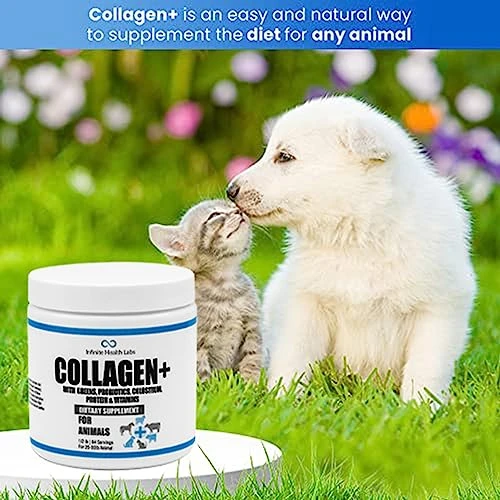 - Boost health: Our collagen powder enhances your GI and organ health, resulting in improved overall well-being. Regular intake ensures your pet is getting all the essential vitamins and minerals for optimal health.