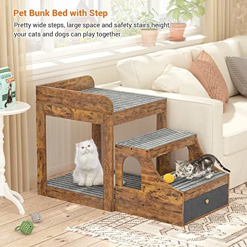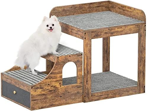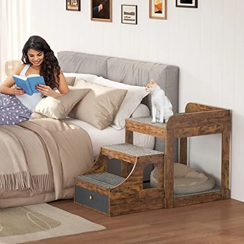 - 🐾 Large Space with a Storage Drawer – The space underneath the bed is large too, so your dogs and cats can play together. The top bed space is 21.65*21.65 inches, providing a safe and large space to lie down and rest. It can hold up to 250 lbs. The drawer underneath the stair is large too, you can install your pet’s toys and food too.