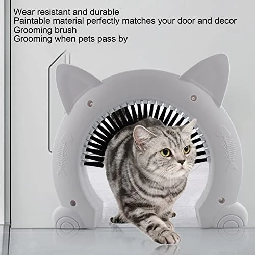 - Silent Design and Cute Shape — Pet Doors for Cats with Silent brush, pets can rub hair, when the pet passed by the hair can be groomed. Cat door border with fish bone pattern, cat ears design.