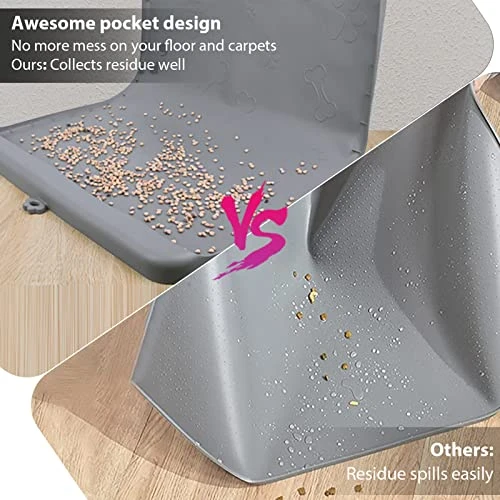 - 【Food Grade Silicone】- Silicone pet feeding mats, safe for your pet and family. It’s Non-skid, Waterproof, Durable, and Flexible. Also, it is better at preventing dog bowls from sliding due to stronger contact with the pet bowl.