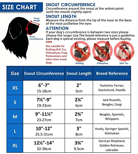 - Buy with Confidence-Suitable for the long-snout dogs, like German Shepherd, Golden Retriever, American Staffordshire Terrier, Labrador, Husky, and so on. It is very important to find a nearly fit size. Please measure twice before buying. If you have any questions about sizing, we offer great customer service and work hard to fix your problem.