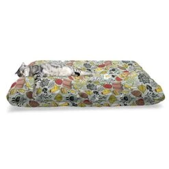Ambesonne Grunge Pet Bed, Various Skull Omelet Watermelon Onion Mushroom Cooking Eye Banana Food Illustration, Chew Resistant Pad For Dogs And Cats Cushion With Removable Cover, 24″ X 39″, Multicolor