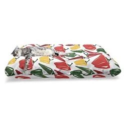 Ambesonne Peppers Pet Bed, Mexican Food Ingredients Farmland Produce Hand Drawn Arrangement Organic Peppers, Chew Resistant Pad For Dogs And Cats Cushion With Removable Cover, 24″ X 39″, Multicolor