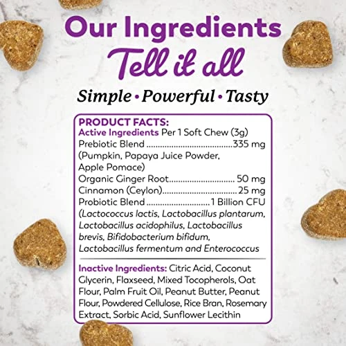 - Made with ingredients that have been carefully selected to support your dog’s digestive health including prebiotics, probiotics, digestive enzymes, and fiber-rich foods such as pumpkin and apple.
