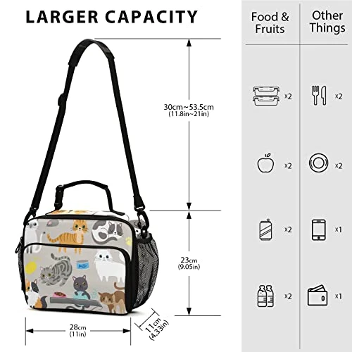 - Portable: The adjustable shoulder strap facilitate you to take this lunch bag out for office or gym. Double zippers design for easy access. You can store small things in the two side mesh and front pocket