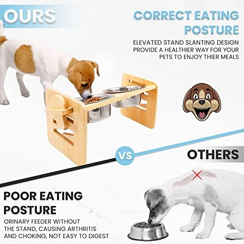 - (PROMOTES PET HEALTH) The 15-degree tilted angle of the stand allows protection for your dog to not have to strain their neck while they eat their food. This feeding station helps promote digestion and helps pets with arthritis.