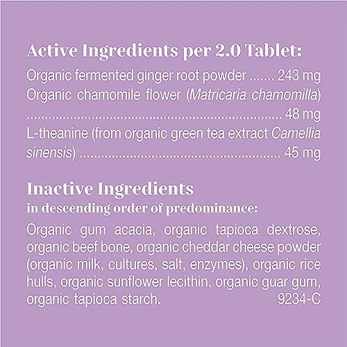 - Non-GMO Project Verified dog supplement includes chamomile and L-theanine from green-tea extract, and is made with no grains or artificial colors, flavors or preservatives
