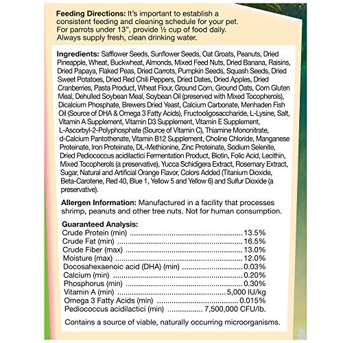 - Over 30 Unique Gourmet Ingredients: Fruits, Vegetables, Nuts And More Combine To Ensure Your Bird Receives The Complex Carbs, Vitamins, Minerals, And Fiber They Need