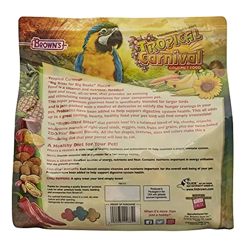 - Over 30 Unique Gourmet Ingredients: Fruits, vegetables, nuts and more combine to ensure your bird receives the complex carbs, vitamins, minerals, and fiber they need
