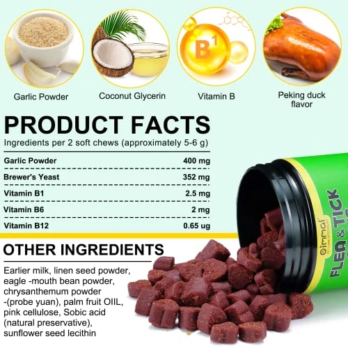 - 🐾【Natural Health Support】—- The dog flea and tick chewable supplement is made from high quality ingredients and enriched with vitamins B1, B6, B12. So it also helps improve the immune system and maintain healthy skin. Keep your dog safe from fleas and ticks with our supplement.