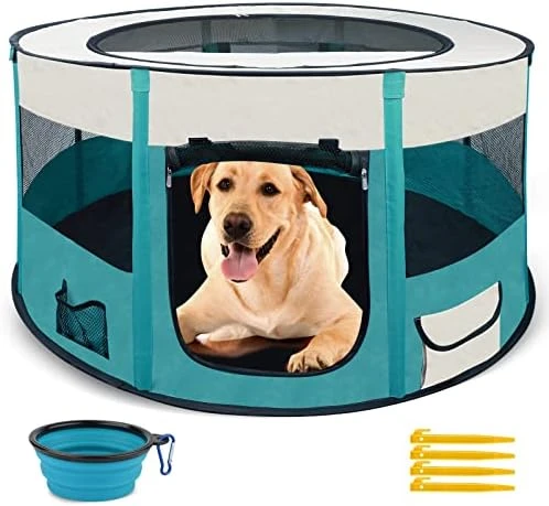- ✨🐶🐈🐾🐾【Portable and Lightweight】 Volume, heavy boxes are a thing of the past! Our playpen is lightweight yet strong, making it ideal for indoor and outdoor activities; travel, camping and so much more! It also folds flat when not in use for easy transport and storage.Comes with a foldable dog bowl for added convenience.