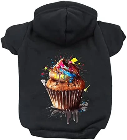 - This fun dog sweater outfit slips on and off easily. Cupcake Dog Hoodie is made with high-quality cotton fabric, and provides cozy warmth with soft Sherpa fleece lining.