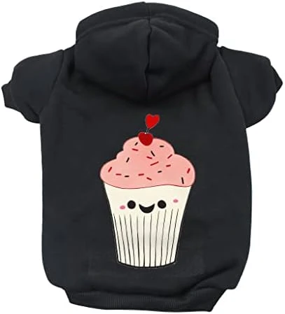 - This fun dog sweater outfit slips on and off easily. Funny Cupcake Dog Hoodie is made with high-quality cotton fabric, and provides cozy warmth with soft Sherpa fleece lining.