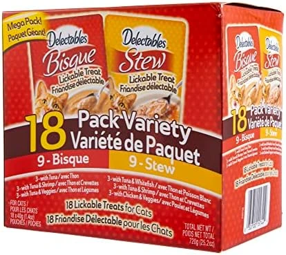 - Your frisky feline will love trying all our lip smacking varieties: stew, bisque, and Chowder, which include items for kittens and senior cats (10 years+ and 15 years+)