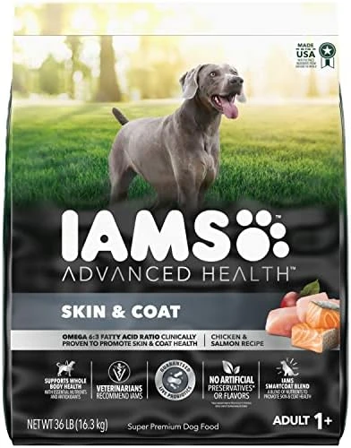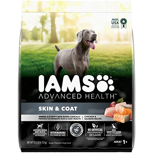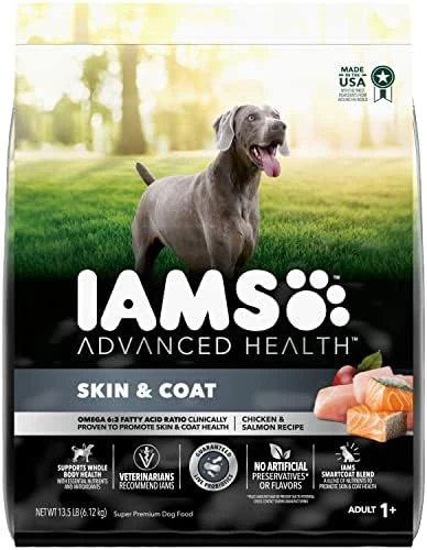 - Contains one (1) 13.5 lb. Bag of IAMS Advanced Health SKIN & COAT Chicken and Salmon Recipe Adult Dry Dog Food