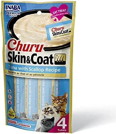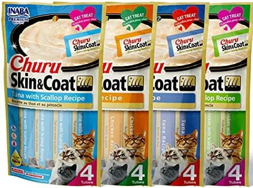 - FUN AND FUNCTIONAL: Like our original Inaba Churu Cat Treats, these tubes are a low-calorie treat that helps with hydration. But we’ve also packed them with Omega-3 fatty acids from fish oil to help maintain healthy skin and a shiny coat