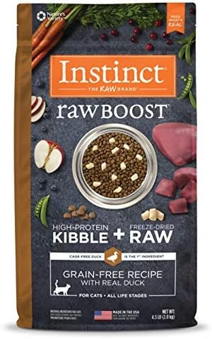 - OUR BEST CAT FOOD BOOSTED WITH RAW: We craft dry & wet cat food from real ingredients. Compare Instinct to Blue Buffalo, Fancy Feast, Hills Science Diet, Royal Canin, Rachel Ray, Natural Balance, Merrick, Purina One, Friskies, Wellness, Iams & Weruva.