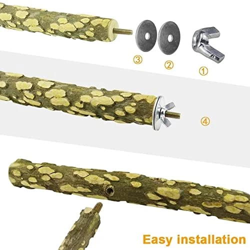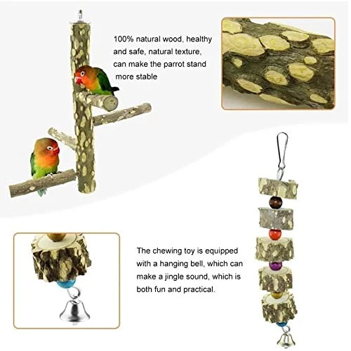 - The package includes wooden hanging chewing toys and wooden bird perches, and all that will make more fun to birds.