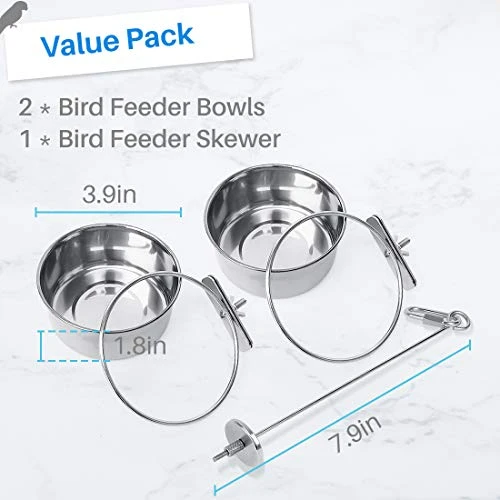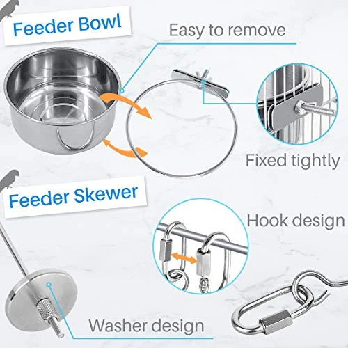 - ⭐ 𝗠𝗮𝘁𝗲𝗿𝗶𝗮𝗹 — Bird cage cups and bird treat skewer are all made of high quality stainless steel, safe, durable, anti rust and easy to clean.