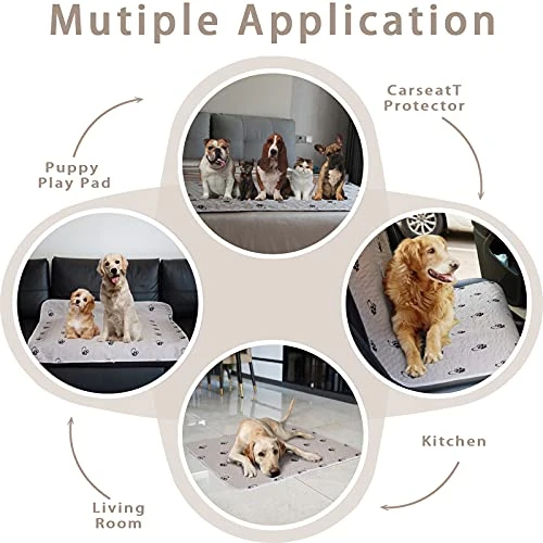 - 【MULTI-USE】:This 36″x 48″ reusable dog potty pet training pads can be used in dog playpens, kennels, under food and water bowls, under cat litter boxes. It is helpful to protect our floors, sofas and furniture from being damaged. Can also be used for car and RV travel, protecting car seats and car trunks.