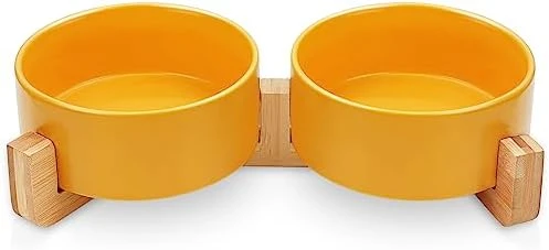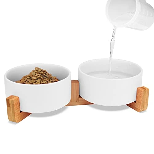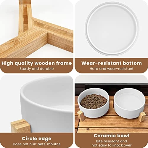 - Safe & Environmental Protection: Dog and cat bowls are made of high-quality ceramic. The wooden rack is made of Australian bamboo wood, which is strong and durable, not easy to mold.
