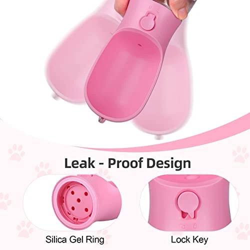 - ✅【Easy to Use & Carry】One-hand operation, open the lock key and press the button to fill water, release to stop water. Very easy to carry, you can put this dog travel water bottle into backpack or hanging on your hand with sling rope.