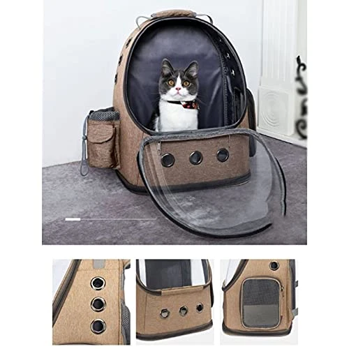 - ▲You can carry the backpack in the front of your body. The little opening on one side is nice to reach in and pet her when she’s nervous. Built-In security leash makes sure the safety.