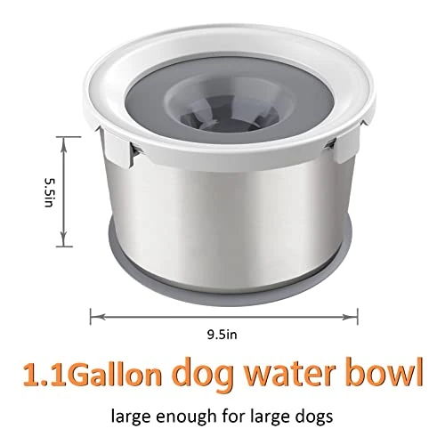- 4.4L Large Dog Bowl: Bowl dimension: 9.6*6inches.1.1 Gallon pretty large capacity dog water bowl, suit for large dogs or multi-pets to use.Vehicle Carried Travel Water Bowl for Dogs