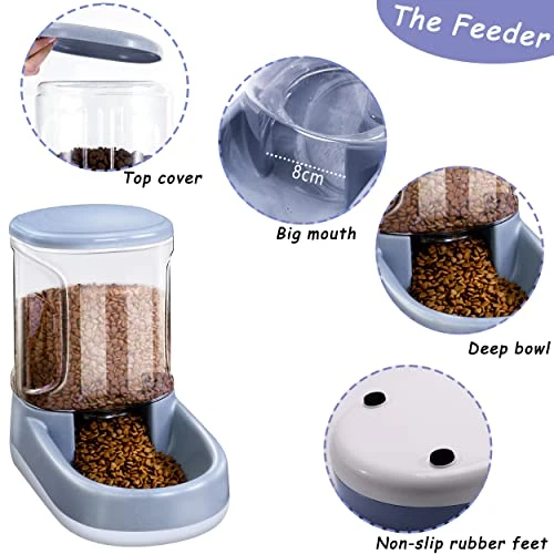 - [Package includes]–1 food feeder + 1 water dispenser + Non-slip Black mats(After getting the package, please check the following installation methods step by step,and the last step, Install a black Non-slip mat on the base)