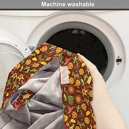 Lunarable Cinco De Mayo Dog Crate Cover, Pattern With Traditional Food Sombrero And Dia De Los Muertos Skull, Easy To Use Pet Kennel Cover For Small Dogs Puppies Kittens, 48 Inch, Multicolor
