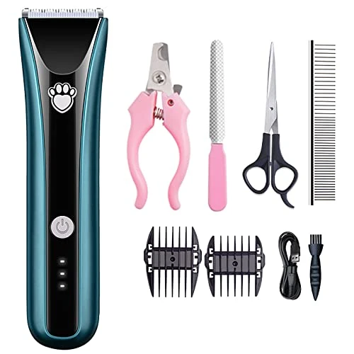 - Pet Grooming Complete Kit, This Dog Includes 4 Guide Combs (3-4-6-9mm) For Length Control, Also Includes Cleaning Brushes.