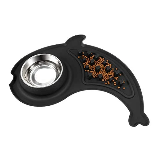 - ★ High Quality Material – The slow feeder pet bowl is made of eco-friendly food grade silicone and stainless steel, dogs, cats and other pets can eat or drink in the bowl with safety. The raised edges in extra large base area prevents food and water from scattering to the ground.
