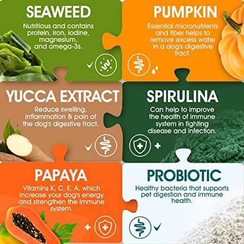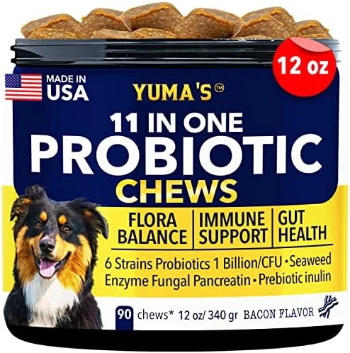 - Tummy Troubles Rescue — Our probiotic dog chews help your pup recover from bloating, gas, and diarrhea. This probiotic for dogs promotes a natural balance of bacteria for better gut health. Stimulate Nutrient Absorption — These all-natural dog probiotic chews include pumpkin and canine-specific lactobacillus. The live microorganisms and natural enzymes found in our pet probiotics help absorb nutrients to support your pup’s immune system