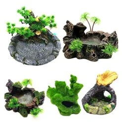Aquarium Decoration Plant Resin Simulation Pot Turtle Lizard Climbing Pet Food Bowl Fish Tank Decoration Aquarium Supplies C