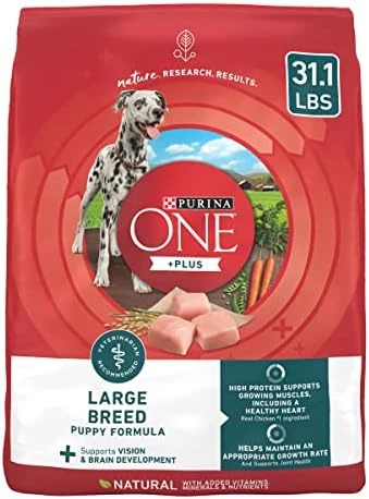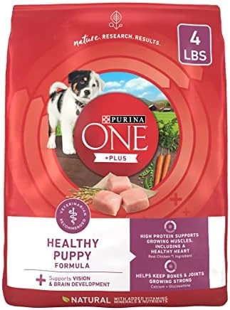 - Purina ONE puppy food made with DHA, a nutrient found in mothers’ milk, to support vision and brain development and four antioxidant sources to support a strong immune system