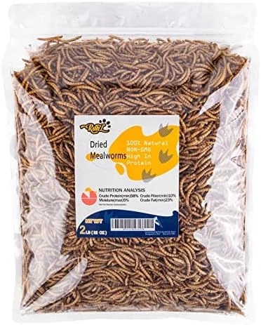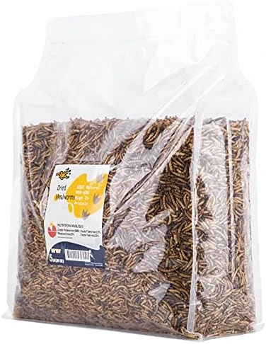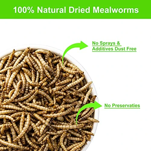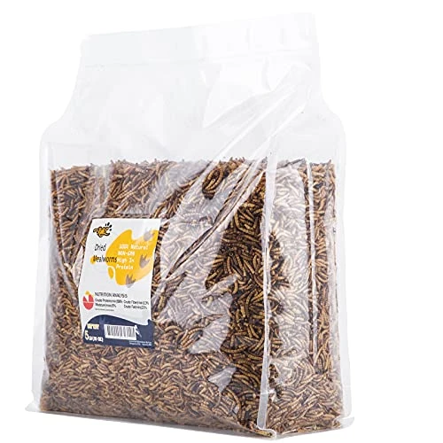 - 【Convenient feeding】-Dried with live fresh worms for convenient storage. No refrigeration required. Our sturdy resealable bags are easy to use and store. Feeding instructions: Simply scatter mealworms on the ground and your pets will go crazy for delicious mealworms treat.