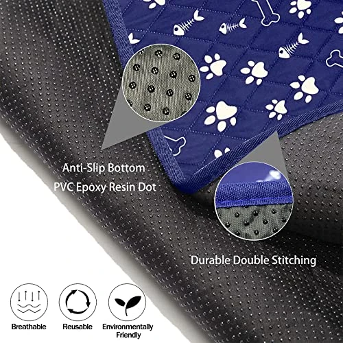 - Non-slip – Breathable and fast dry surface, Super absorbent natural cotton, waterproof layer to prevent leakage, Anti-slip bottom with gels. Skin-friendly and soft material provides your dog a more comfortable home, large absorb and no leakage