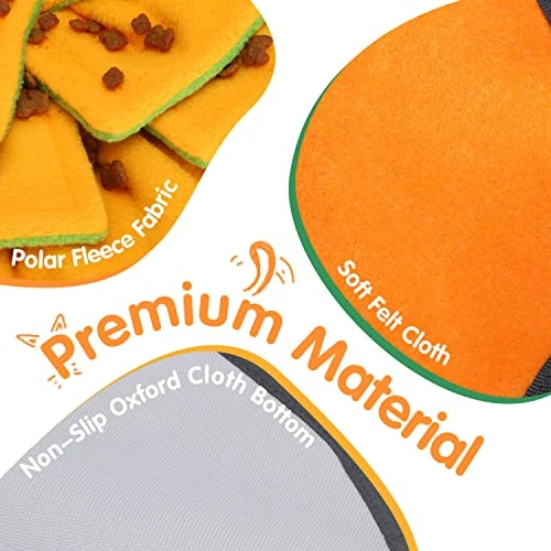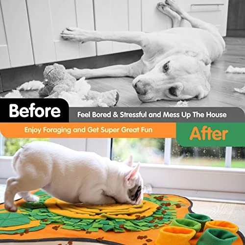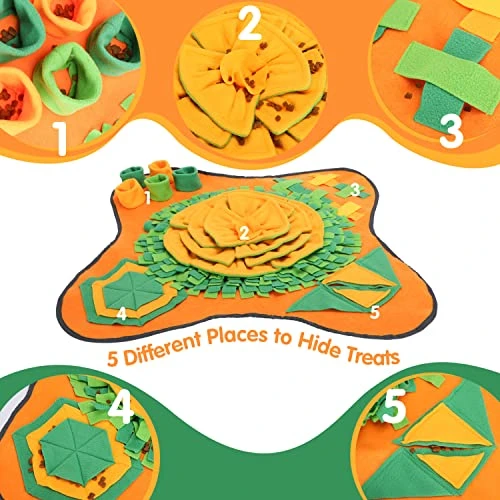 - 🦴 RICH FEEDING FUN: The ‘flower in the middle and the ‘grass’ around it, which are pretty dense and multi-layered, are perfect areas for hiding food. Seeing you hide snacks in front of them must spark the interest of your dog! There are additional 4 feeding games in the corner for your dogs to explore. It will take time for dogs to sniff to find their favorite treats and give them much more fun than ever with Nobleza snuffle mat for dogs small.