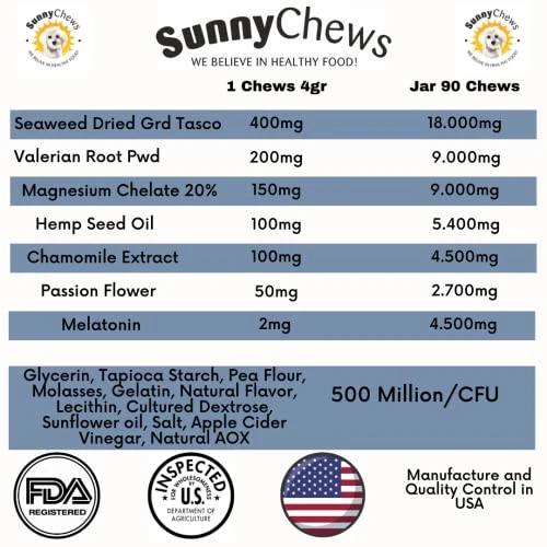 - ✅ SunnyChews treats are proudly made in the USA, providing you and your pet with safe, secure, and high quality products. All We ask for is 30 days. Give it time and you will see results. Just like us, your dog isn’t always in the mood for a tasty treat. We do ask that you try breaking it up in their food or wrapping it in a piece of meat or cheese. If that doesn’t work, just contact us and we will refund you full amount.