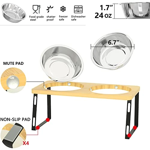 - 【🐶Pick for cats and small dogs】The raised dog bowls for small dogs,Please measure your pet before buying, ideal for pets between 5 inches – 12 inches tall when standing normally, suitable for most cats and small dogs, especially pugs, teddy, bulldogs.