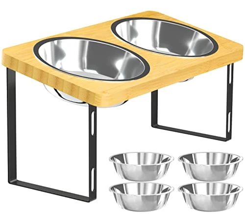 - 【🙅Reject black chin】Use food-grade stainless steel bowls to avoid black chins,the raised cat food bowls come with 4 bowls for cleaning and replacement, Say goodbye to troubles and wash your hands. For you, please stay away from plastic bowls that are easy to accumulate oil, and avoid black chin caused by folliculitis caused by hair blockage.